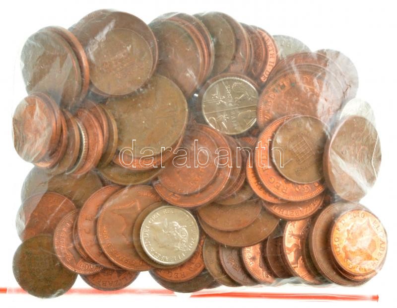 Nagy-Britannia ~1960-2000. Vegyes fémpénz tétel ~450g-os súlyban T:1--2- Great-Britain ~1960-2000- Mixed coin lot in ~450g weight C:AU-VF
