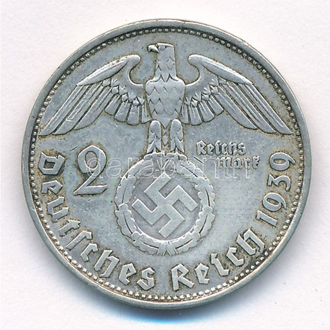 Német Harmadik Birodalom 1939B 2M Ag "Hindenburg" T:2- patin... https://www.darabanth.com/de/412-Fernauktion/412.0/Numismatik/Weltweit-Munzen~1500014/Nemet-Harmadik-Birodalom-1939B-2M-Ag-Hindenburg-T2-patina-German-Third-Reich-1939B-2-Mark-Ag-H~II2568867