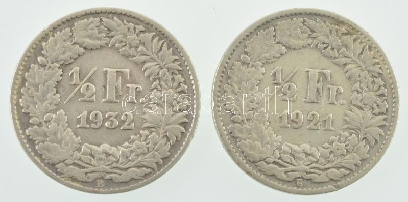 Svájc 1921B 1/2Fr Ag + 1932B 1/2Fr Ag T:2-,3 patina, kis ph