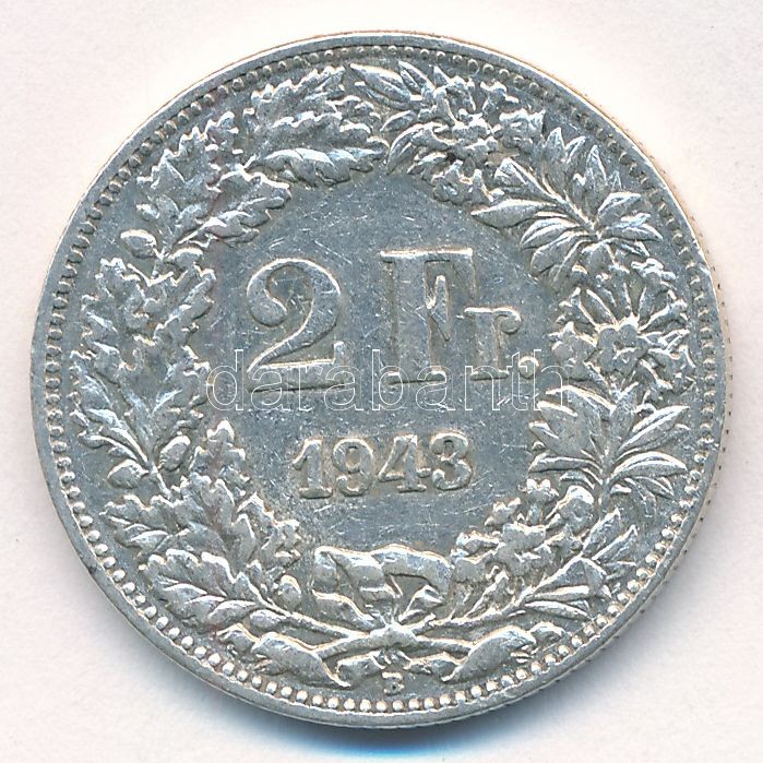 Switzerland 1943B 2 Francs Ag C:XF,V... https://www.darabanth.com/de/412-Fernauktion/412.0/Numismatik/Weltweit-Munzen~1500014/Svajc-1943B-2Fr-Ag-T2-2-patina-Switzerland-1943B-2-Francs-Ag-CXF-VF-patina-Krause-KM2321~II2570605