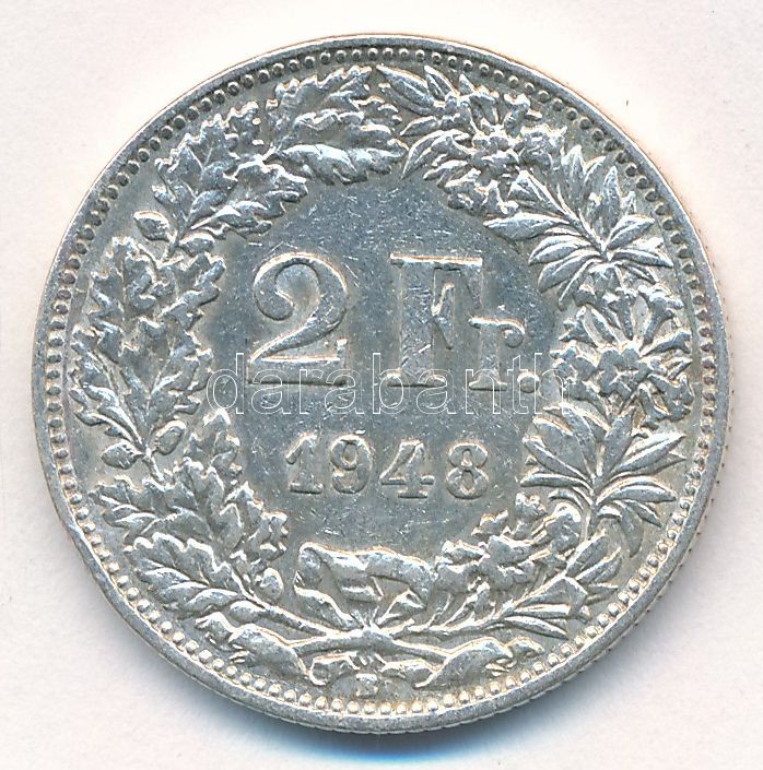Switzerland 1948B 2 Francs Ag C:XF,V... https://www.darabanth.com/de/412-Fernauktion/412.0/Numismatik/Weltweit-Munzen~1500014/Svajc-1948B-2Fr-Ag-T2-2-patina-Switzerland-1948B-2-Francs-Ag-CXF-VF-patina-Krause-KM2321~II2570681