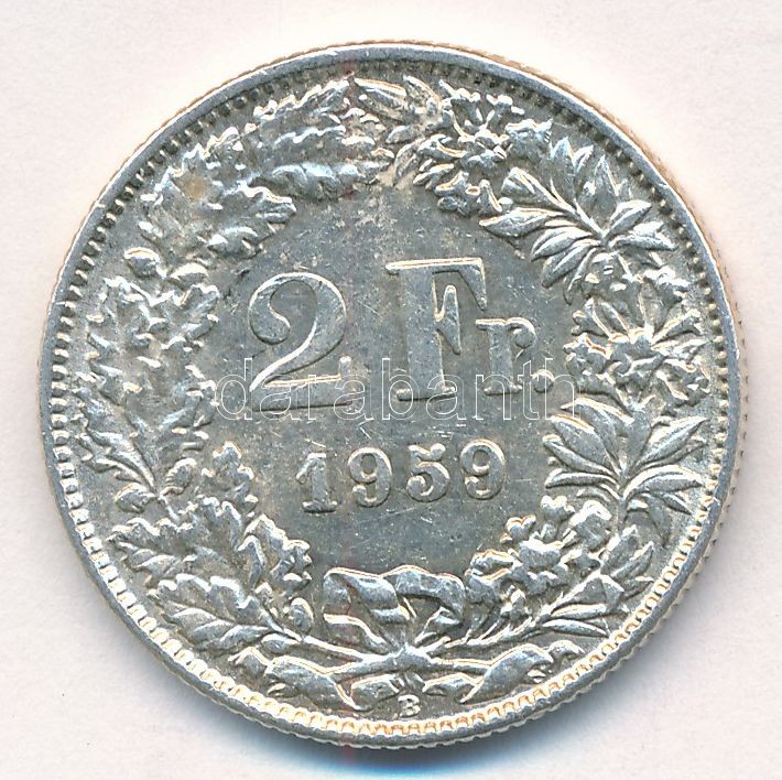 Switzerland 1959B 2 Francs Ag ... https://www.darabanth.com/de/412-Fernauktion/412.0/Numismatik/Weltweit-Munzen~1500014/Svajc-1959B-2Fr-Ag-T2-patina-kis-ph-Switzerland-1959B-2-Francs-Ag-CXF-patina-small-edge-error~II2570718