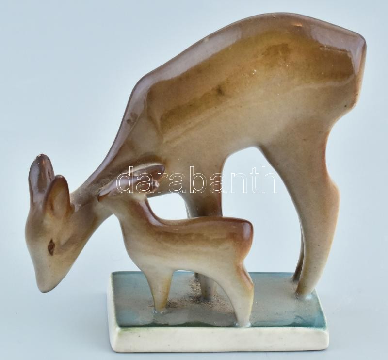 Beschreibung: Zsolnay porcelán őzmama a gidájával figura, kézzel festett, jelzett, kopásnyomokkal, m: 8 cm