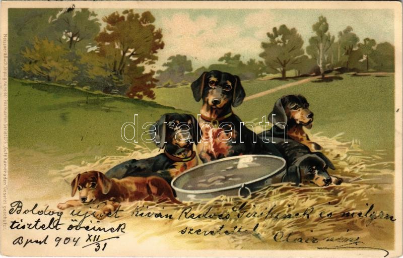 1905 Tacskók / Dachshund dogs. Meissner & Buch Künstler-Postkarten Ser... https://www.darabanth.com/de/413-Fernauktion/413.0/Ansichtskarten/Hunde~2000073/1905-Tacskok-Dachshund-dogs-Meissner-Buch-Kunstler-Postkarten-Serie-1275-Gute-Kameraden-lith~II2583113