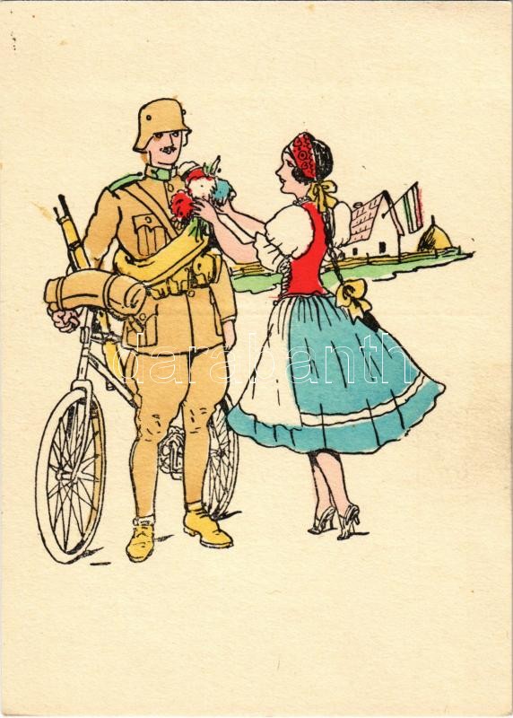 Bevonulás. Kiadja a Délvidéki Egyetemi és Főiskolai Hallgatók Egyesülete / WWII Hungarian military art postcard, entry of the Hungarian troops, irredenta propaganda