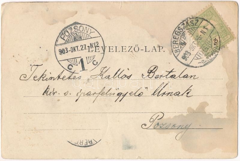 Beschreibung: 1903 Szatmárhegy, Viile Satu Mare; Református templom / Calvinist church (fl) - Kallós Bertalan iparfelügyelő (későbbi államtitkárnak) címezve