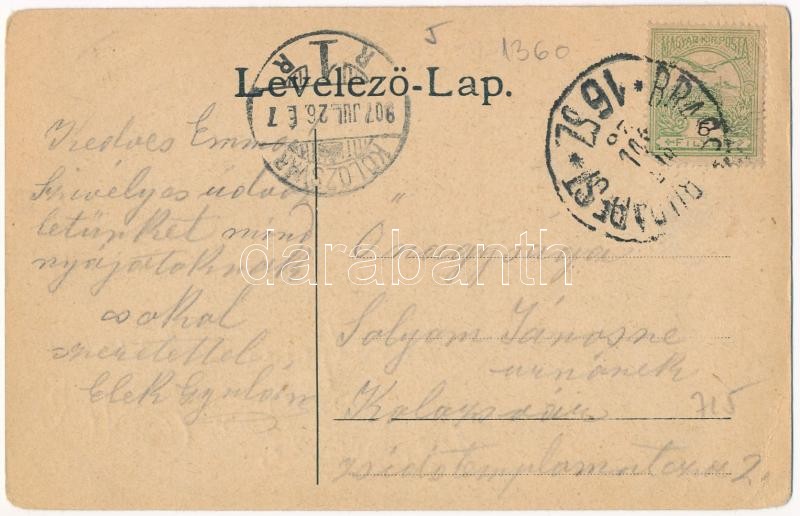 Beschreibung: 1907 Marosújvár, Uioara, Ocna Mures; fürdő, Király utca, Stefánia bánya belseje / spa, street, mine interior. Art Nouveau, floral (EK) + "BRASSÓ-BUDAPEST 16. SZ." vasúti mozgóposta