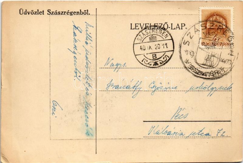 1940 Szászrégen, Rehin; Fő tér, piac / main square, market + "1940 Szá... https://www.darabanth.com/de/413-Fernauktion/413.0/Ansichtskarten/Siebenburgen~2000007/1940-Szaszregen-Rehin-Fo-ter-piac-main-square-market-plus-1940-Szaszregen-visszatert-So~II2579215