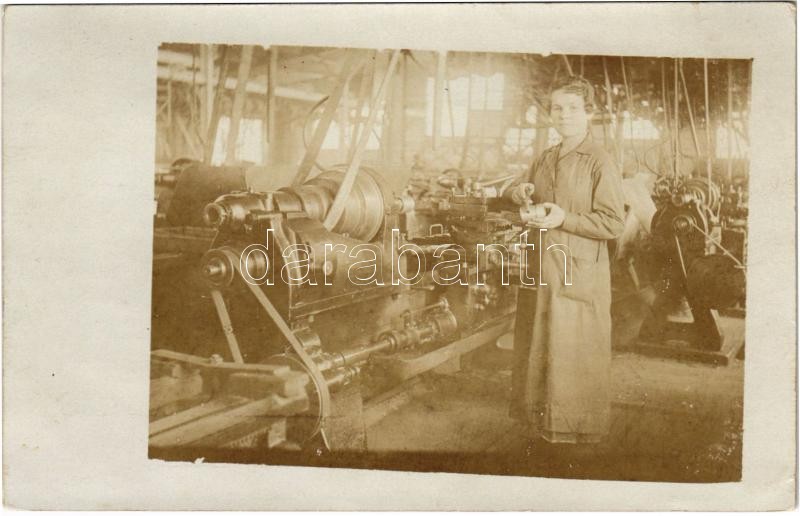 Kassa, Kosice (?); gyár belső munkásnővel / factory interior with fema... https://www.darabanth.com/de/413-Fernauktion/413.0/Ansichtskarten/Slowakei~2000008/Kassa-Kosice-gyar-belso-munkasnovel-factory-interior-with-female-worker-photo~II2579144