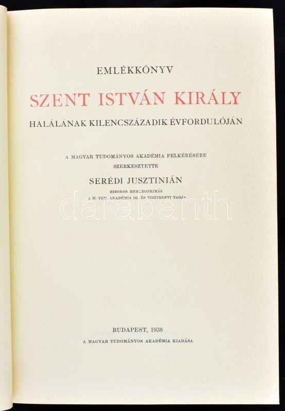 Emlékkönyv Szent István király halálának kilencszázadik évfordulóján. ... https://www.darabanth.com/de/413-Fernauktion/413.0/Bucher/Bucher-Geschichte~1000008/Emlekkonyv-Szent-Istvan-kiraly-halalanak-kilencszazadik-evfordulojan-Szerk-Seredi-Jusz~II2580210