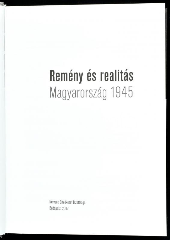 Remény és realitás Magyarország 1945.Szerk.: Horváth Zsolt, Kiss Réka. Bp., 2017., Nemzeti Emlékezet Bizottsága. Kiadói kartonált papírkötés, kiadói papír védőborítóban.