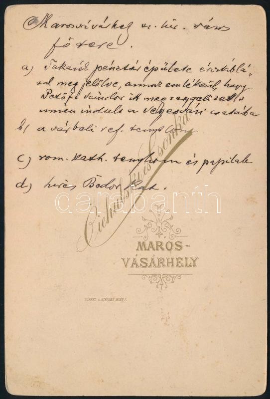 cca 1880 Marosvásárhely főtere, keményhátú fotó Ciehulski és Csonka mű... https://www.darabanth.com/de/413-Fernauktion/413.0/Fotografie/Foto~500021/cca-1880-Marosvasarhely-fotere-kemenyhatu-foto-Ciehulski-es-Csonka-mutermebol-hatoldal~II2584610