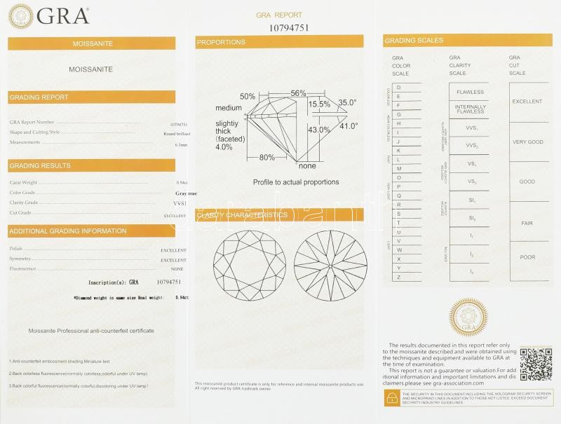 Beschreibung: Arany (Au/14) Moissanite ékítéses (0,94ct) gyűrű, fehérarany, jelzett, 53-as méret, bruttó:4,4g (GLOBAL GEMOLOGICAL RESEARCH ASSOCIATION Certifikáttal)