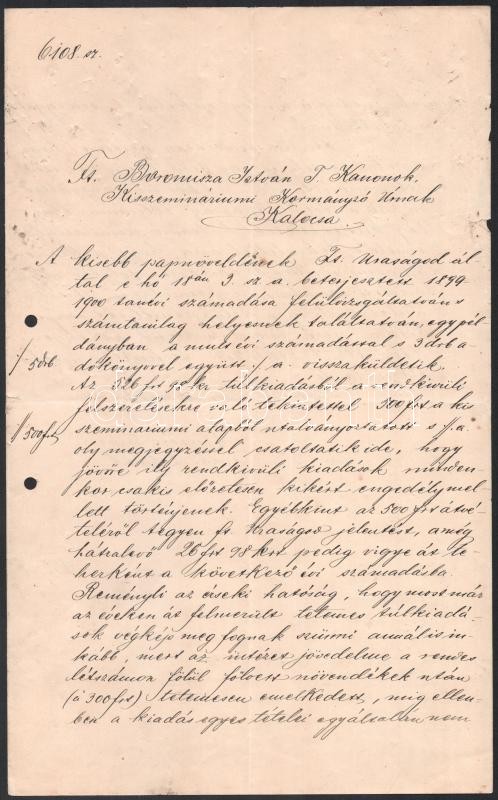 1900-1918 Kalocsa, a kalocsai érsekség által kiállított 3 db hivatalos levél, irat; különböző érseki helynöki aláírással, egy dombornyomott fejléces, ill. egy vízjeles levélpapíron, lyukasztással