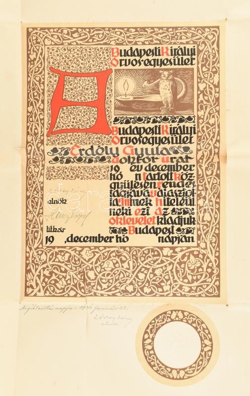 1921 Budapesti Királyi Orvosegyesület által kiállított oklevél, szakad... https://www.darabanth.com/de/413-Fernauktion/413.0/Kunst-Dokumente-andere-Sammelgebiete/Dokument~500018/1921-Budapesti-Kiralyi-Orvosegyesulet-altal-kiallitott-oklevel-szakadassal~II2582473