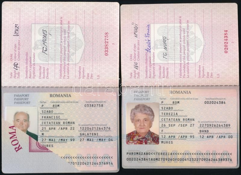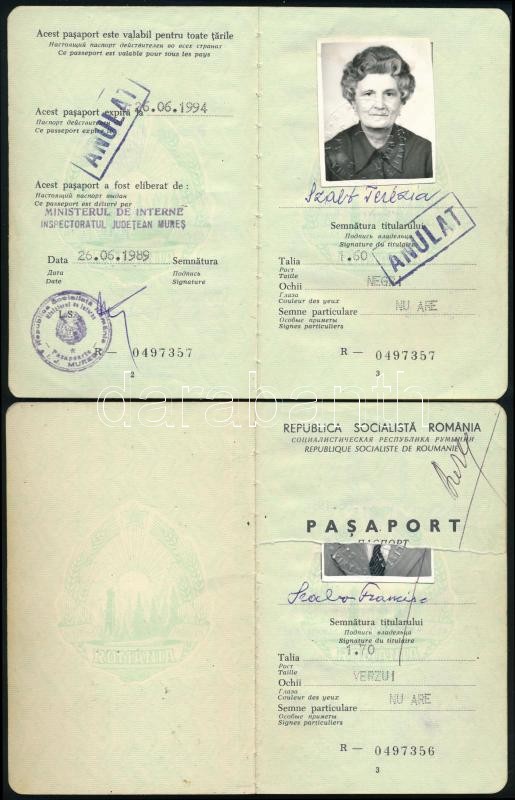 1989-1999 4 db román fényképes útlevél, közte 2 hiánnyal / Romanian pa... https://www.darabanth.com/de/413-Fernauktion/413.0/Kunst-Dokumente-andere-Sammelgebiete/Dokument~500018/1989-1999-4-db-roman-fenykepes-utlevel-kozte-2-hiannyal-Romanian-passports-2-pages-damage~II2579146