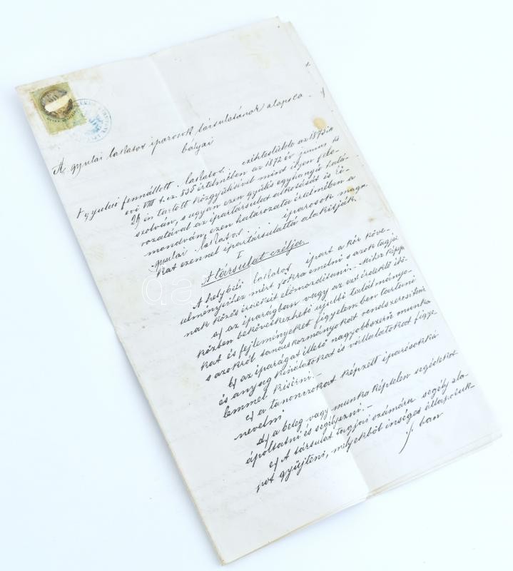 cca 1880 A Gyulai Lakatos Iparosok társulatának alapszabályai 8p. ille... https://www.darabanth.com/de/413-Fernauktion/413.0/Kunst-Dokumente-andere-Sammelgebiete/Dokument~500018/cca-1880-A-Gyulai-Lakatos-Iparosok-tarsulatanak-alapszabalyai-8p-illetekbelyeggel~II2578671