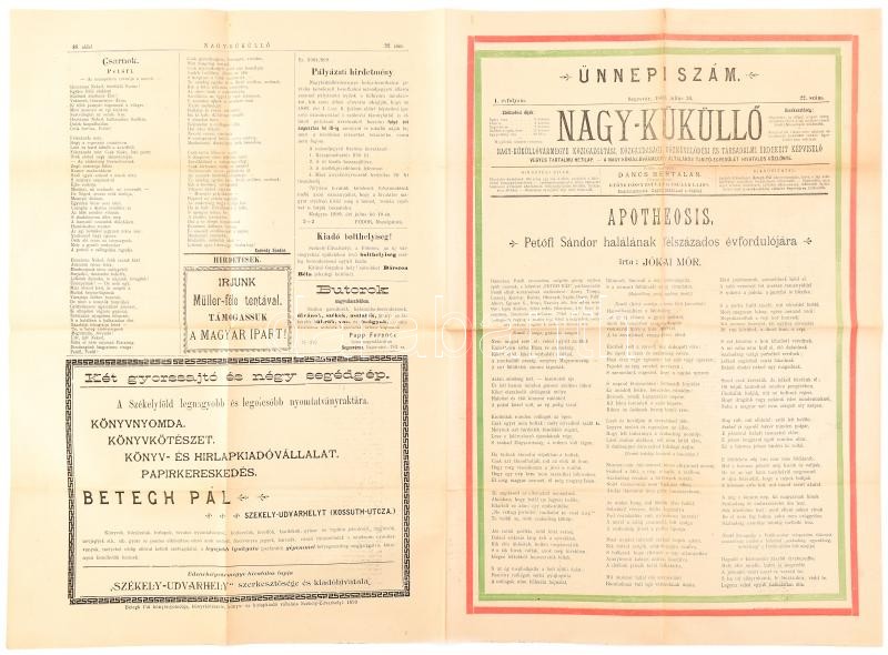 1899 Nagy-Küküllő I. évf. 22. sz., 1899. júl. 30., ünnepi szám Petőfi ... https://www.darabanth.com/de/413-Fernauktion/413.0/Kunst-Dokumente-andere-Sammelgebiete/Drucksachen~1000002/1899-Nagy-Kukullo-I-evf-22-sz-1899-jul-30-unnepi-szam-Petofi-Sandor-1823-1849-ha~II2577694