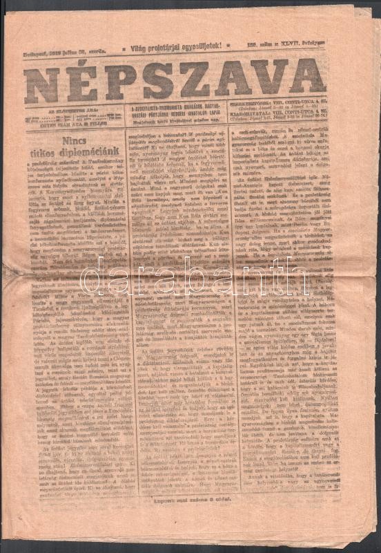 1919 Népszava XLVII. évf. 180. sz., 1919. júl. 30., a Magyar Tanácsköz... https://www.darabanth.com/de/413-Fernauktion/413.0/Kunst-Dokumente-andere-Sammelgebiete/Drucksachen~1000002/1919-Nepszava-XLVII-evf-180-sz-1919-jul-30-a-Magyar-Tanacskoztarsasag-idejebol-8-~II2580303