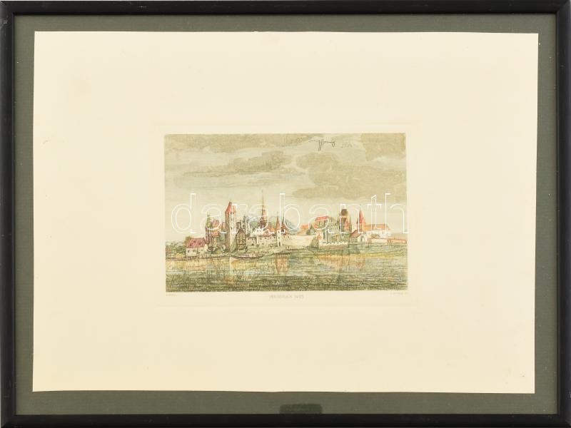 Beschreibung: cca 2000 Dürer után: Innsbruck, 1495. Modern nyomat, papír. Üvegezett műanyag keretben. 10,5x15,5 cm