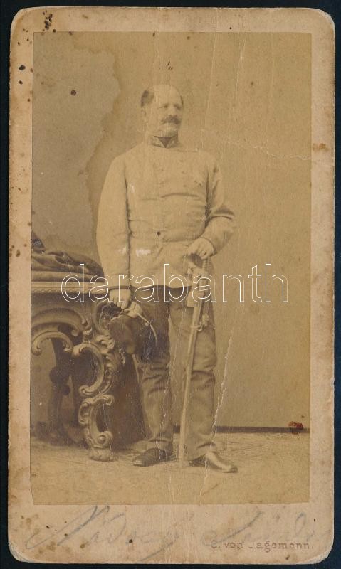 Beschreibung: cca 1860-65 Nádasy László katonatiszt portréja, aláírt, keményhátú fotó Carl von Jagemann bécsi műterméből, foltos, 10,5×6 cm