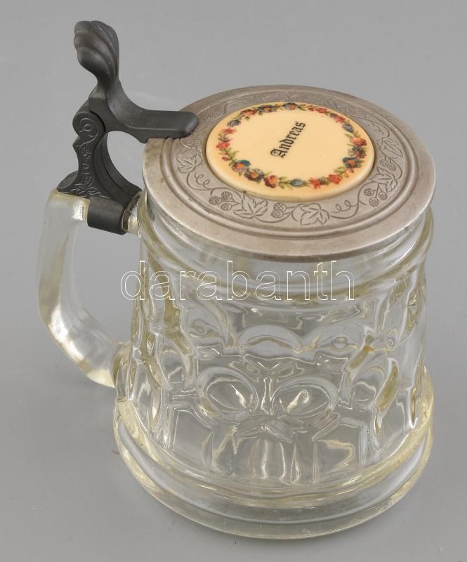 Ónfedeles üveg korsó, tetején porcelán betét, Andreas felirat, kopásny... https://www.darabanth.com/de/413-Fernauktion/413.0/Porzellan-Keramik-Glass/Glaser~500007/Onfedeles-uveg-korso-tetejen-porcelan-betet-Andreas-felirat-kopasnyomokkal-m15cm~II2577141
