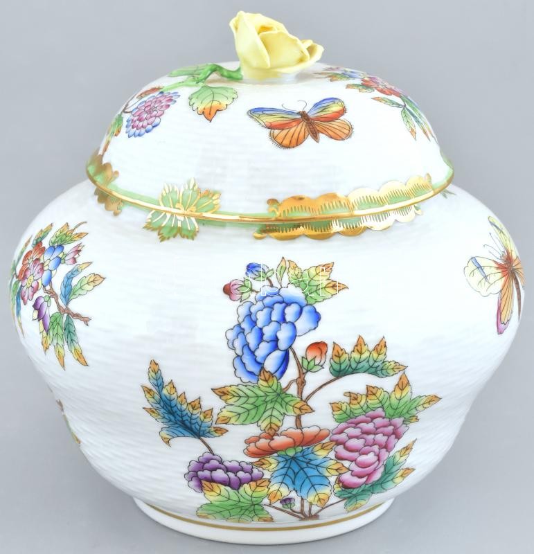 Herendi Viktória mintás, fonott kosár nyomott porcelán, jelzett, kopás... https://www.darabanth.com/de/413-Fernauktion/413.0/Porzellan-Keramik-Glass/Porzellan~500006/Herendi-Viktoria-mintas-fonott-kosar-nyomott-porcelan-jelzett-kopasnyomokkal-m16-d16cm~II2574749