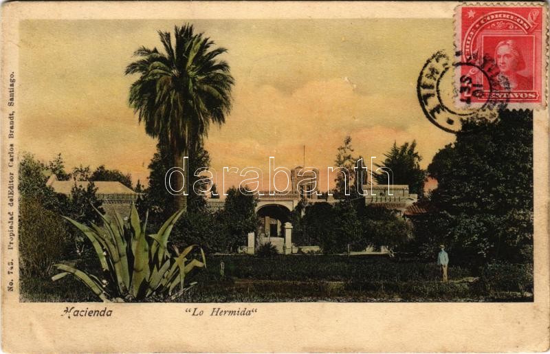 Santiago, Hacienda, Lo Hermida (wet corners) https://www.darabanth.com/de/414-Fernauktion/414.0/Ansichtskarten/Chile~1500021/Santiago-Hacienda-Lo-Hermida-wet-corners~II2591640