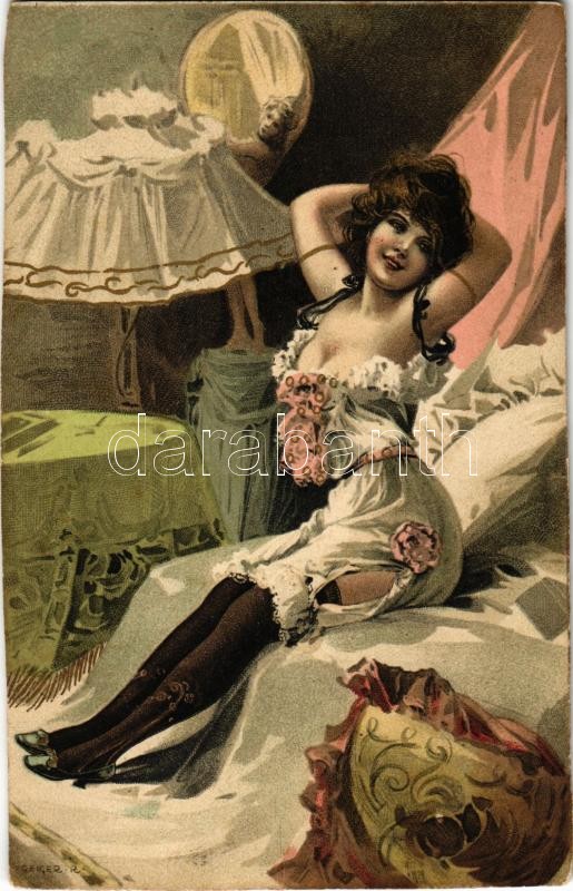 Erotic lady art postcard. B.K.W.I. 794-2. litho s: Geiger R. (vágott /... https://www.darabanth.com/de/414-Fernauktion/414.0/Ansichtskarten/Erotik~1500056/Erotic-lady-art-postcard-BKWI-794-2-litho-s-Geiger-R-vagott-cut~II2587058