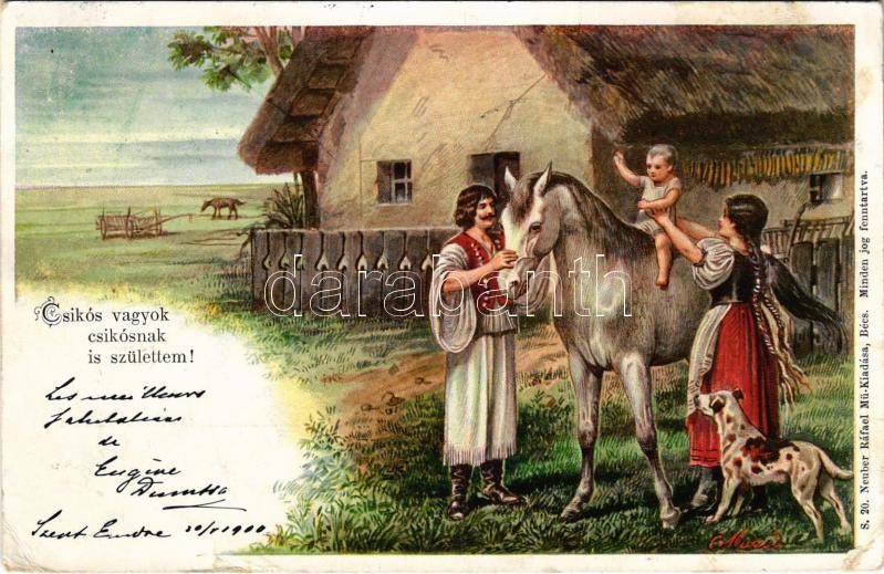 1900 Csikós vagyok, csikósnak is születtem. Magyar folklór művészlap. Neuber Ráfael műkiadása S. 20. / Hungarian folklore art postcard (kis szakadás / small tear)