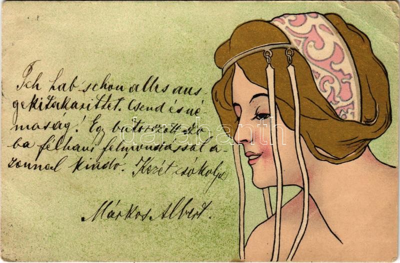 1900 Szecessziós hölgy / Art Nouveau lady, litho (EK) https://www.darabanth.com/de/414-Fernauktion/414.0/Ansichtskarten/Kunstlerkarten~1500075/1900-Szecesszios-holgy-Art-Nouveau-lady-litho-EK~II2593858