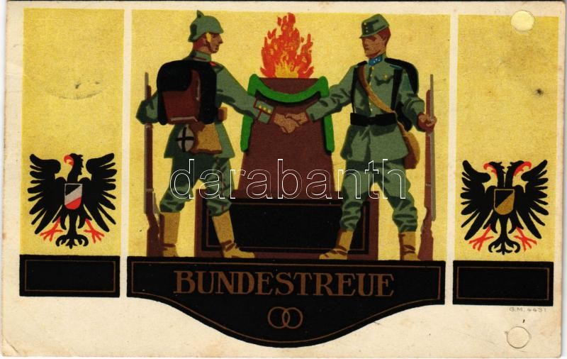 1914 Bundestreue / WWI German and Austro-Hungarian K.u.K. military art... https://www.darabanth.com/de/414-Fernauktion/414.0/Ansichtskarten/Militaria~1500068/1914-Bundestreue-WWI-German-and-Austro-Hungarian-KuK-military-art-postcard-Viribus-Unitis-prop~II2595744