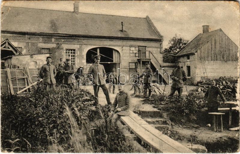 Beschreibung: 1916 Eine Regimentsbadeanstalt im Westen / WWI German military spa with soldiers (EK)