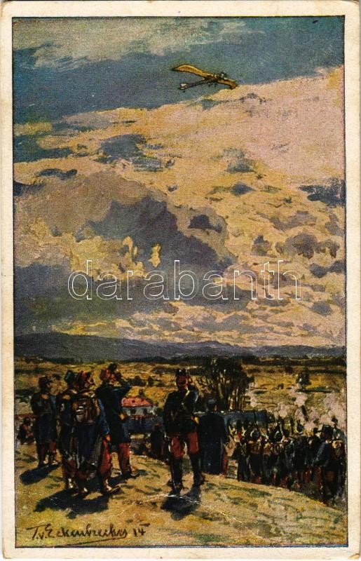 Beschreibung: 1917 Beschießung einer duetschen Taube / WWI German military art postcard, military aircraft s: Eckenbrecher (fa)