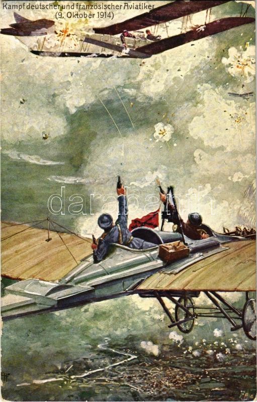 Kampf deutscher und französischer Aviatiker (9. Oktober 1914) / WWI Austro-Hungarian K.u.K. military art postcard, battle between German and French aviators. Offizielle Postkarte für das Rote Kreuz, Kriegsfürsorgeamt und Kriegshilfsbüro 107. (EK)