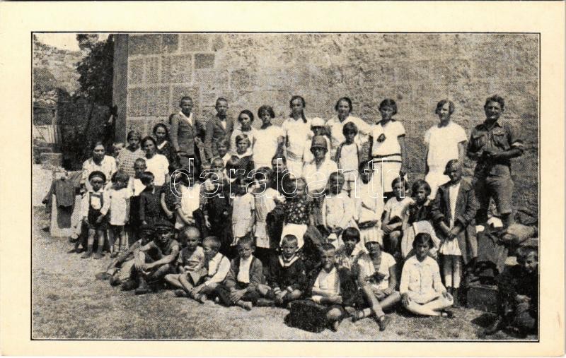 Beschreibung: Az Országos Magyar Gyermekvédő Egyesület gondozottjai a Salamon tornyánál