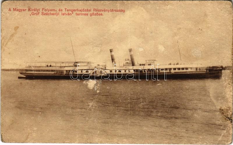 A Magyar Királyi Folyam- és Tengerhajózási Részvénytársaság (MFTR) SS Gróf Széchenyi István termes személyszállító gőzöse, Klösz György és Fia / Hungarian passenger steamship (felszíni sérülés / surface damage)