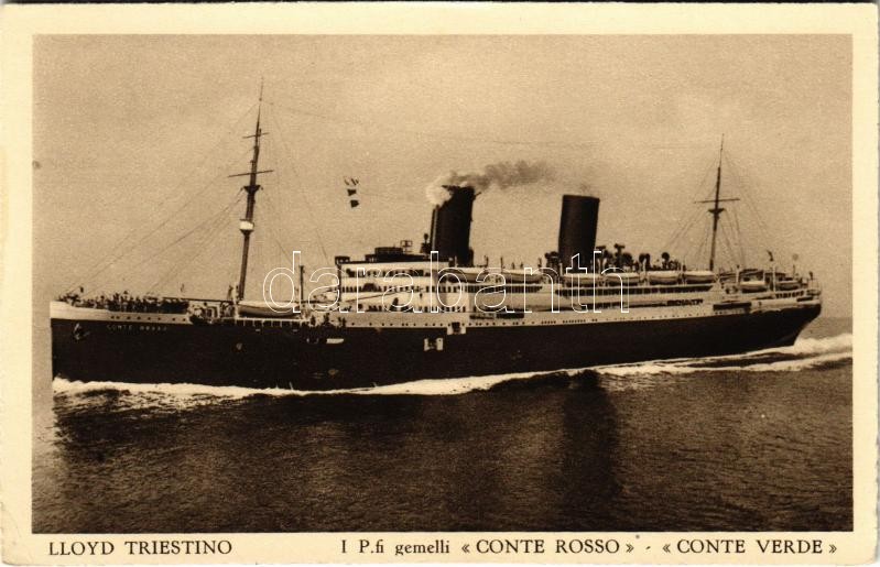 Lloyd Triestino. SS Conte Rosso, SS Conte Verde / Italian ocean liner ... https://www.darabanth.com/de/414-Fernauktion/414.0/Ansichtskarten/Schiffe~1500061/Lloyd-Triestino-SS-Conte-Rosso-SS-Conte-Verde-Italian-ocean-liner-EK~II2590291