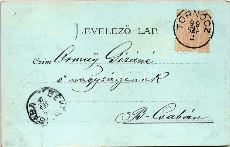 Beschreibung: 1899 (Vorläufer) Érsekújvár, Nové Zámky; Kossuth Lajos tér, templom. Conlegner J. és Fia kiadása / square, church. Art Nouveau, litho (fa)