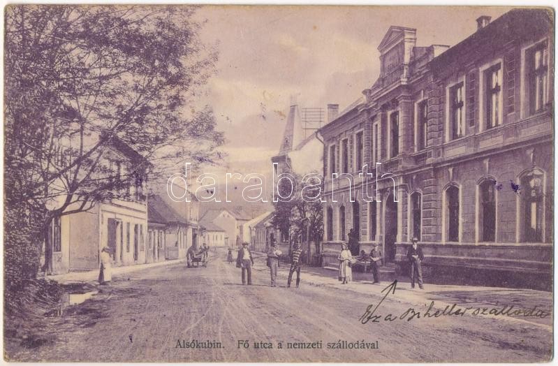 1913 Alsókubin, Dolny Kubín; Fő utca a Nemzeti szállodával. Ferencz Ad... https://www.darabanth.com/de/414-Fernauktion/414.0/Ansichtskarten/Slowakei~1500005/1913-Alsokubin-Dolny-Kubin-Fo-utca-a-Nemzeti-szallodaval-Ferencz-Adolf-kiadasa-main-stree~II2592558