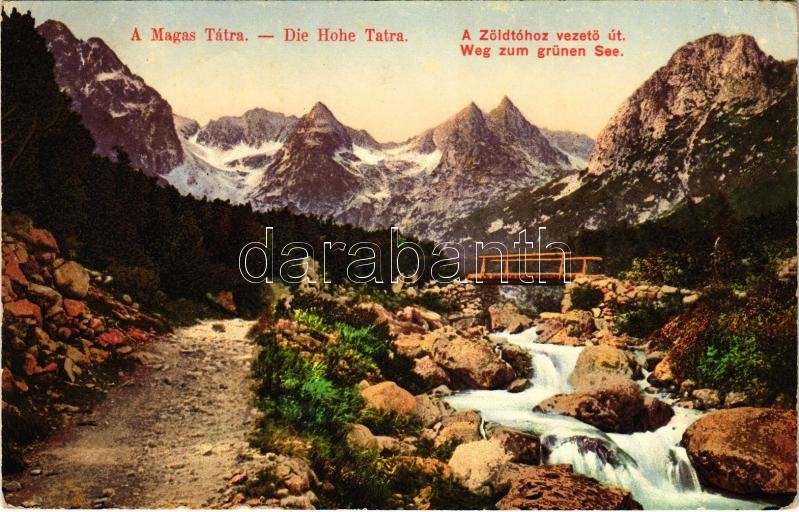 1913 Tátra, Magas-Tátra, Vysoké Tatry; A Zöld-tóhoz vezető út / Weg zu... https://www.darabanth.com/de/414-Fernauktion/414.0/Ansichtskarten/Slowakei~1500005/1913-Tatra-Magas-Tatra-Vysoke-Tatry-A-Zold-tohoz-vezeto-ut-Weg-zum-grunen-See-road-to~II2592760