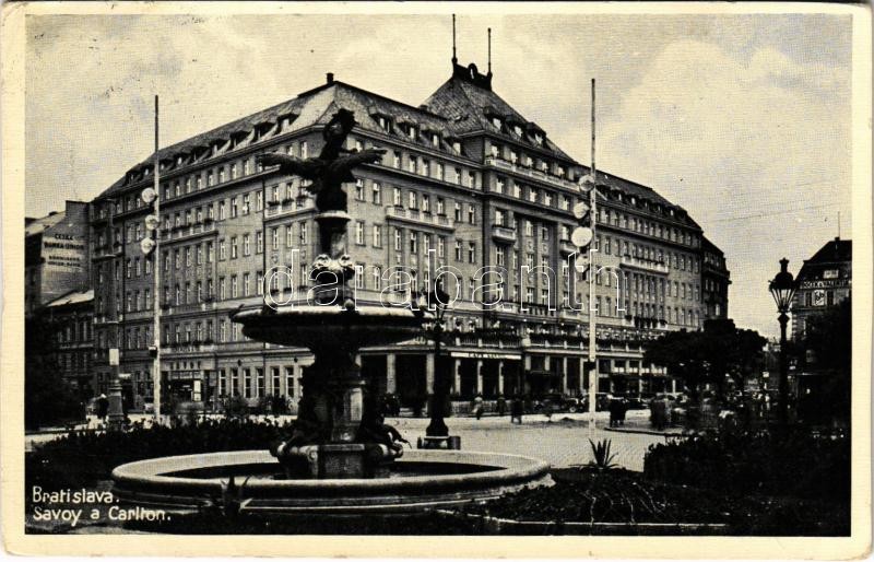 1934 Pozsony, Pressburg, Bratislava; Hotel Savoy és Carlton szálloda, ... https://www.darabanth.com/de/414-Fernauktion/414.0/Ansichtskarten/Slowakei~1500005/1934-Pozsony-Pressburg-Bratislava-Hotel-Savoy-es-Carlton-szalloda-uzletek-hotel-shops-va~II2588741