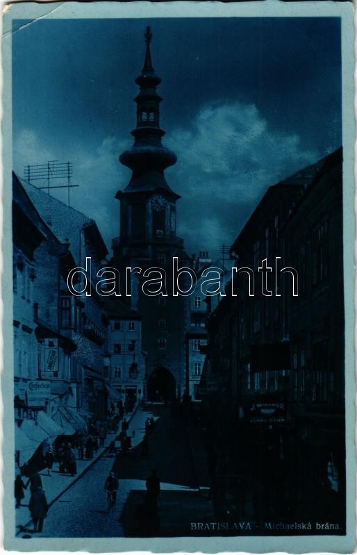 1936 Pozsony, Pressburg, Bratislava; Michaelská brána / Mihály-kapu, ü... https://www.darabanth.com/de/414-Fernauktion/414.0/Ansichtskarten/Slowakei~1500005/1936-Pozsony-Pressburg-Bratislava-Michaelska-brana-Mihaly-kapu-uzletek-drogeria-gate-~II2588744