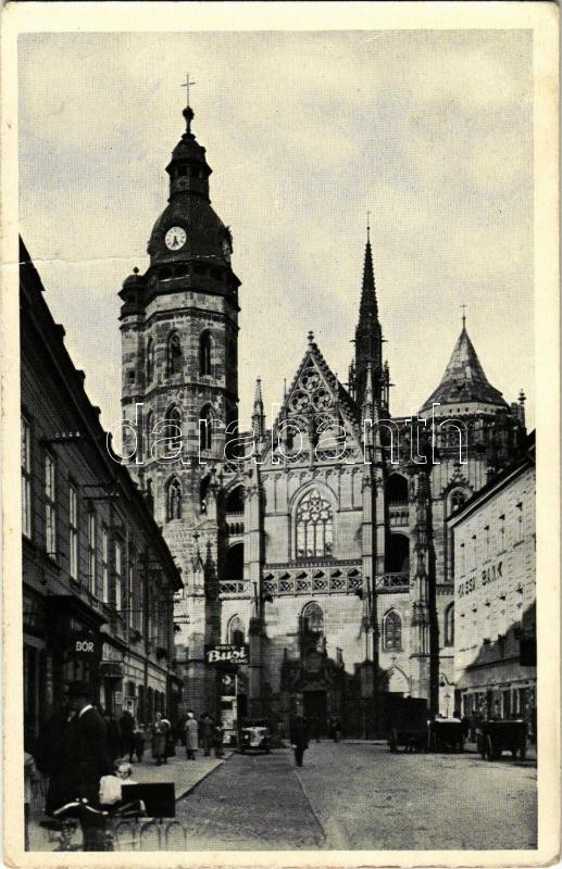 1938 Kassa, Kosice; Dóm / székesegyház, üzletek / cathedral, shops + &... https://www.darabanth.com/de/414-Fernauktion/414.0/Ansichtskarten/Slowakei~1500005/1938-Kassa-Kosice-Dom-szekesegyhaz-uzletek-cathedral-shops-plus-Udvozlet-a-felszabadult-~II2594607