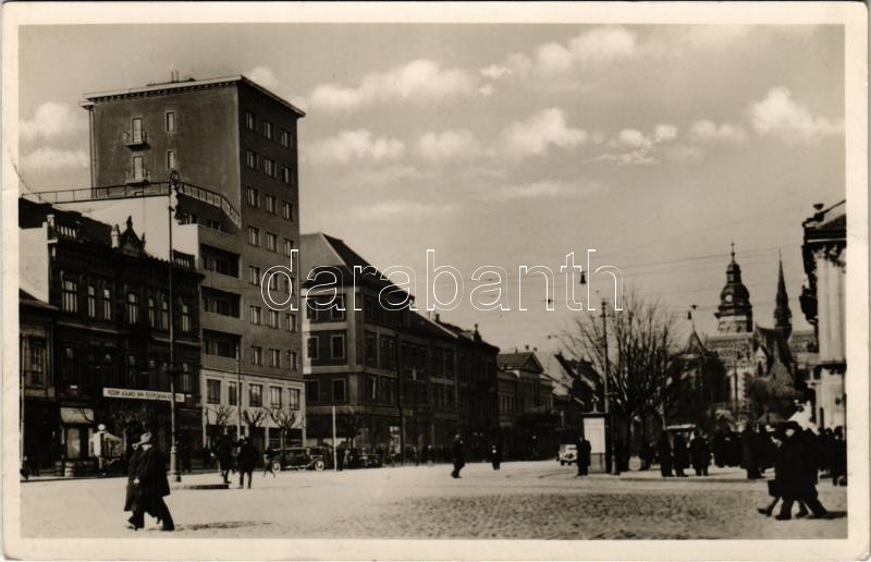 1939 Kassa, Kosice; Fő utca részlet (a Felvidék legmagasabb épülete), Pozsonyi Általános Bank fiókja, automobil. Győri és Boros felvétele / main street, bank, automobiles