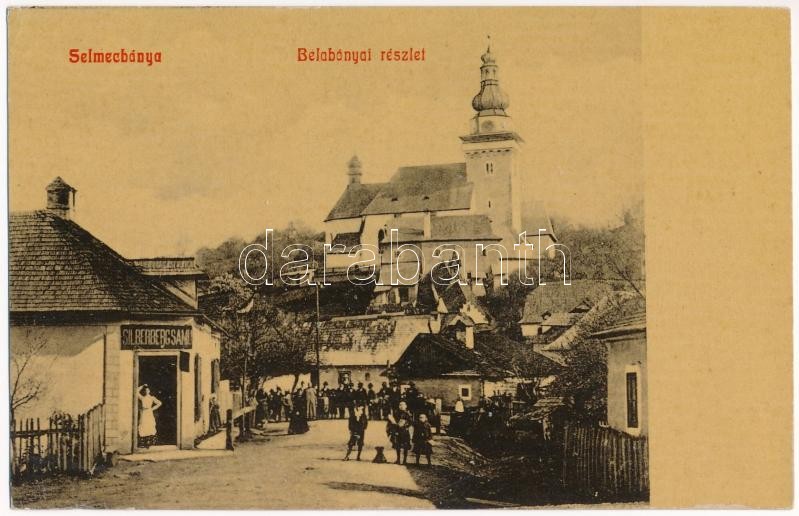 Selmecbánya, Schemnitz, Banská Stiavnica; Bélabányai részlet, templom,... https://www.darabanth.com/de/414-Fernauktion/414.0/Ansichtskarten/Slowakei~1500005/Selmecbanya-Schemnitz-Banska-Stiavnica-Belabanyai-reszlet-templom-Silberberg-Samu-uzlete~II2592841