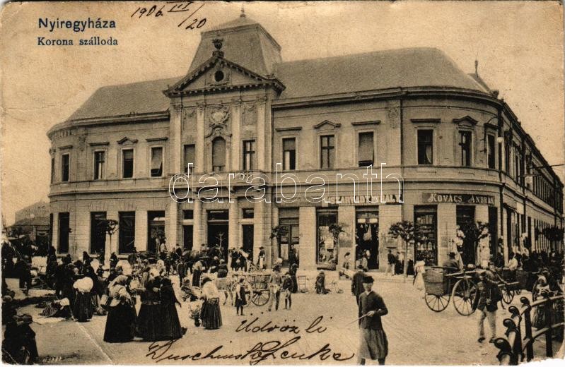 1906 Nyíregyháza, Korona szálloda, Kovács András, Szarvady Mihály üzle... https://www.darabanth.com/de/414-Fernauktion/414.0/Ansichtskarten/Ungarn~1500003/1906-Nyiregyhaza-Korona-szalloda-Kovacs-Andras-Szarvady-Mihaly-uzlete-piac-Fekete-kiada~II2593179