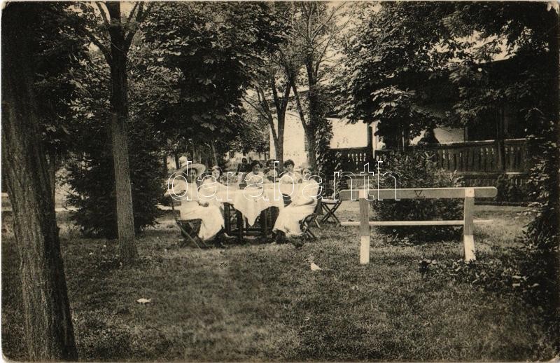 Beschreibung: 1913 Balatongyörök-fürdő, fürdővendéglő kertje (EK)