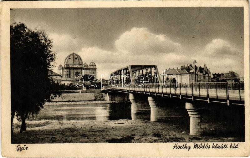 1941 Győr, Horthy Miklós közúti híd, zsinagóga (Rb) https://www.darabanth.com/de/414-Fernauktion/414.0/Ansichtskarten/Ungarn~1500003/1941-Gyor-Horthy-Miklos-kozuti-hid-zsinagoga-Rb~II2589142