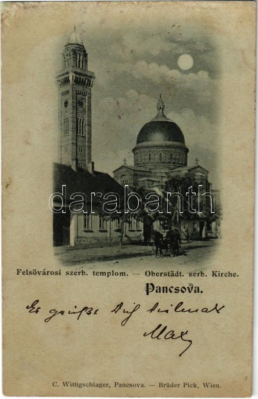 1899 (Vorläufer) Pancsova, Pancevo; Felsővárosi szerb templom, este. C... https://www.darabanth.com/de/414-Fernauktion/414.0/Ansichtskarten/Vojvodina~1500008/1899-Vorlaufer-Pancsova-Pancevo-Felsovarosi-szerb-templom-este-C-Wittigschlager-Serbian-~II2594307